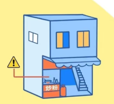 存在隐患:3人以上住宿与生产、经营、储存场所设置在同一建筑物或“前店后宅”“下店上宅”未按规定进行防火分隔。